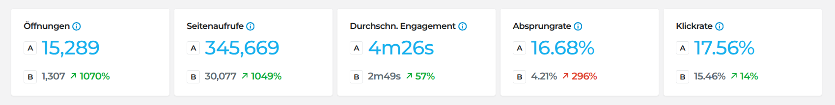 - Den „Gewinner“ in A/B-Tests zu identifizieren. Siehe Funktion „Weiterleitung oder A/B-Test“.