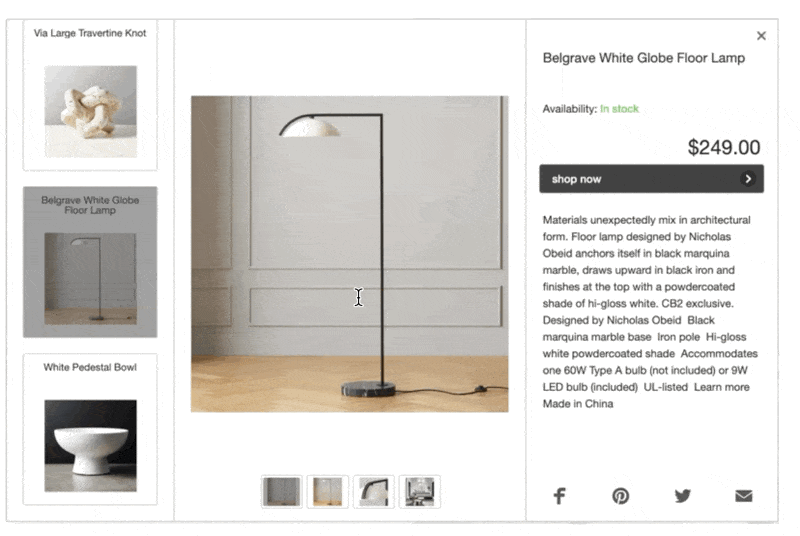 When a product is unavailable, this will be indicated on the page directly, saving the publication's reader an unnecessary click. A customizable 'out-of-stock' icon along with a supporting hover-text appear for products that are either: